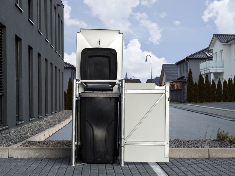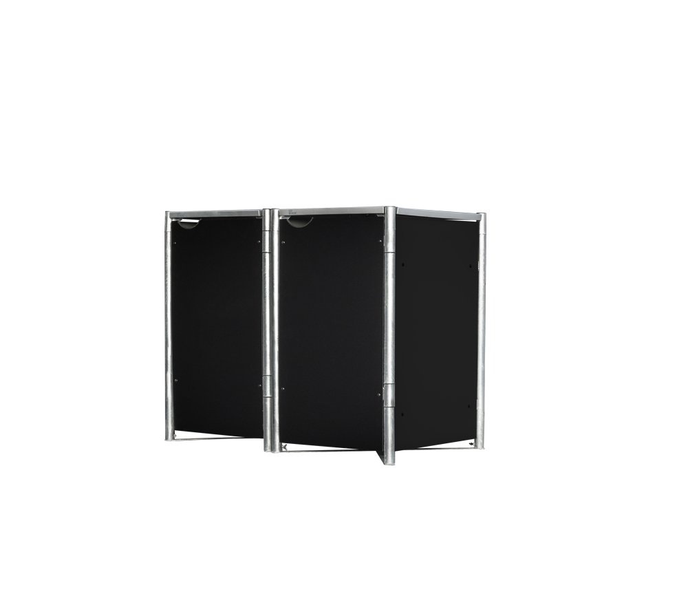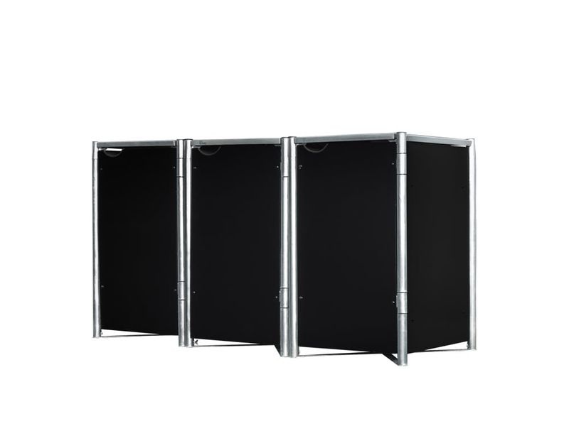 Kovový box na smetné nádoby Hide je praktickým riešením na uloženie smetných nádob s objemom 240 l. Vďaka elegantnému čiernemu prevedeniu zapadne ku každému domu či do záhrady a zároveň ochráni nádobu pred poveternostnými vplyvmi a vlhkosťou.