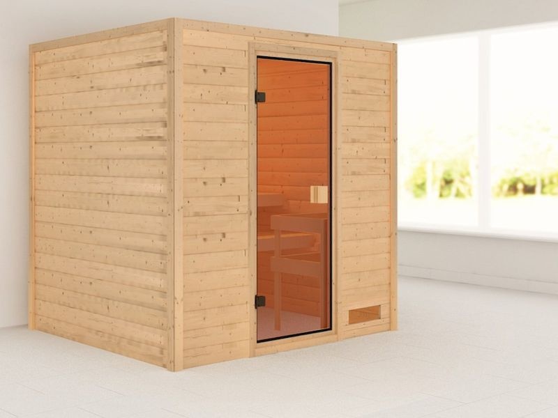 Interiérová sauna je vyrobená z masívneho dreva sily 38 mm. Steny sauny sú zložené zo špeciálne hladených dosiek s dvojitým perom a drážkou, čo garantuje neobyčajnú pevnosť spoja.