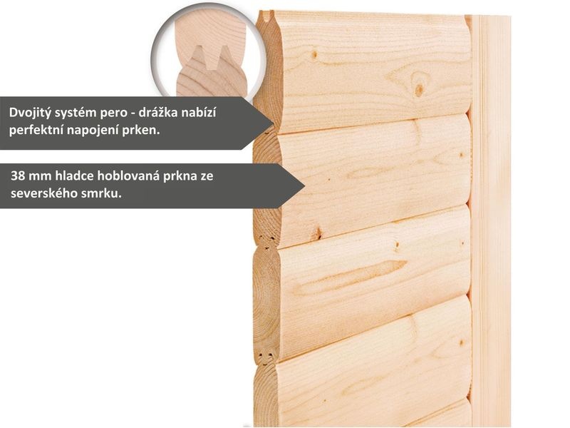 Interiérová sauna je vyrobená z masívneho dreva sily 38 mm. Steny sauny sú zložené zo špeciálne hladených dosiek s dvojitým perom a drážkou, čo garantuje neobyčajnú pevnosť spoja.