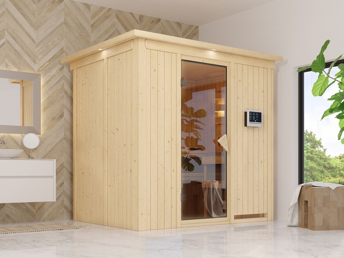 Domáca fínska sauna určená pre dve osoby. Tento model fínskej sauny je určený do temperovaných interiérov domu alebo bytu.