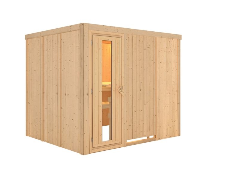 Sauna je celá vyrobená z dreva severského smreku. Drevo pochádza zo vzdialeného severu Európy a je chemicky úplne neošetrené (nie je ani namorené ani nalakované). V dôsledku toho je prosté všetkých známych problematických látok, ktoré by sa v priebehu saunovania mohli z dreva uvoľňovať.