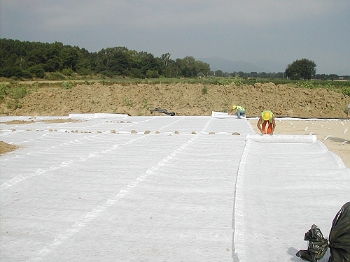 | Typ konštrukcie | Geotextília/jadro/, Geotextília/jadro/geotextília, Geotextília/jadro/fólia |
