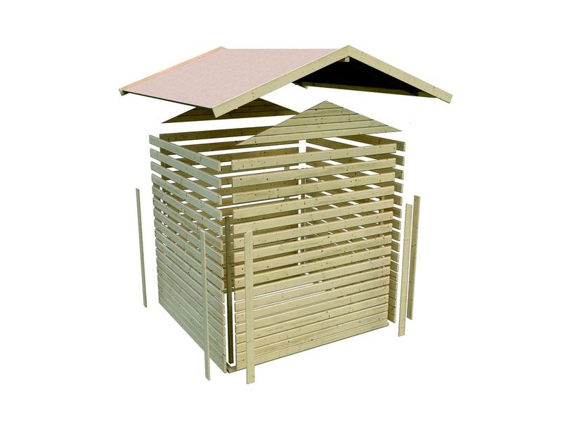 Drevený domček dodávame ako stavebnicu v rozloženom stave. Steny tvoria predpripravené menšie panely, ktoré iba zoskrutkujete k sebe a strechu tvorí celistvá doska. To garantuje extrémne jednoduchú montáž, ktorú zvládne každý domáci majster.