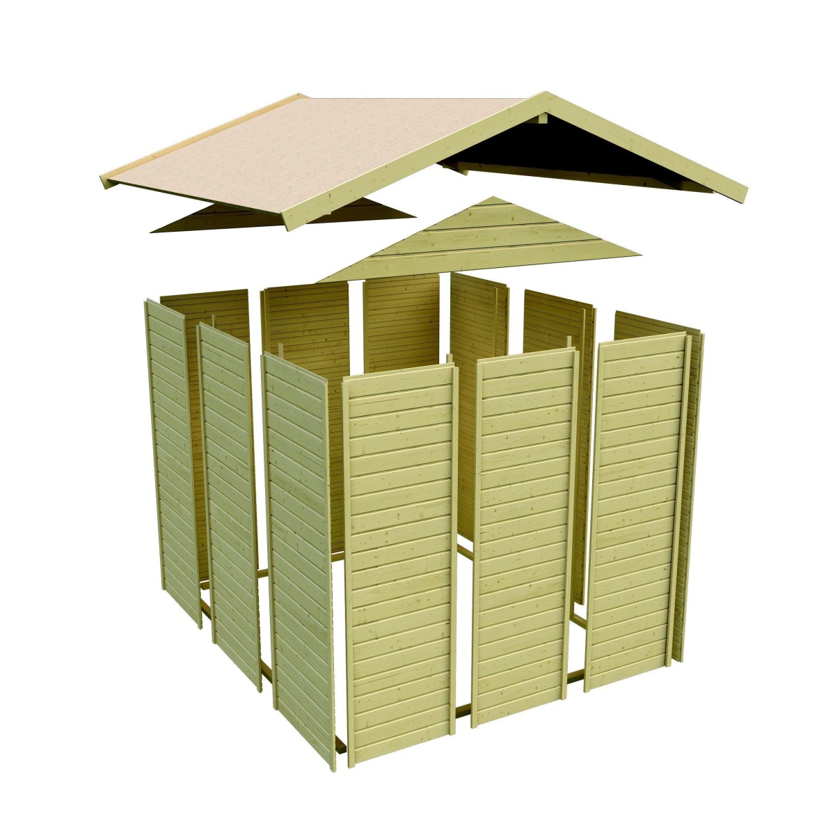 Drevený domček dodávame ako stavebnicu v rozloženom stave. Steny tvoria predpripravené menšie panely, ktoré iba zoskrutkujete k sebe a strechu tvorí celistvá doska. To garantuje extrémne jednoduchú montáž, ktorú zvládne každý domáci majster.