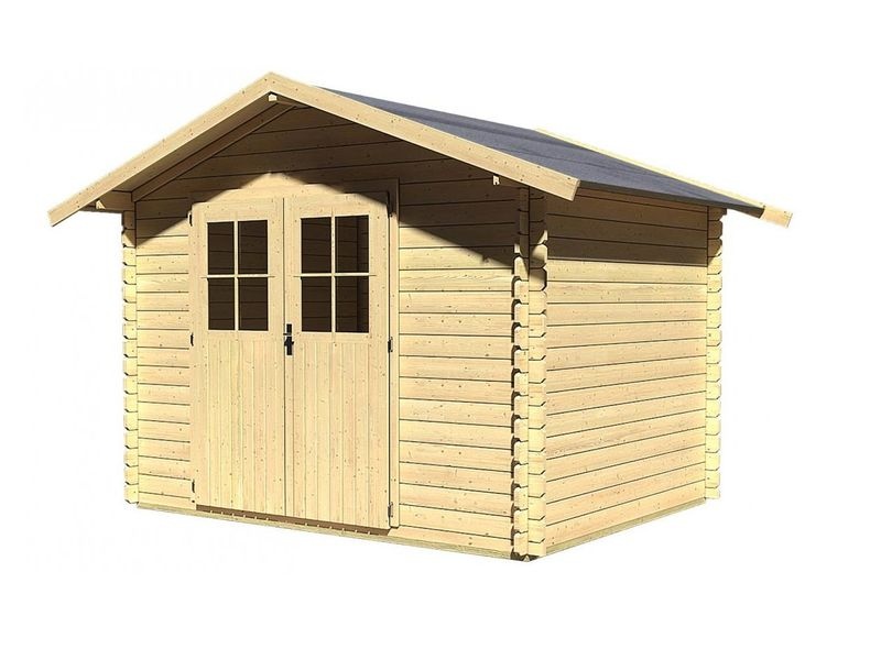 Základný model dreveného domčeka pre vašu záhradu. Tento model má sedlovú strechu a dvojkrídlové dvere na pántoch s oknom v každom krídle. Stavebným materiálom domčeku sú drevené profily hrúbky 28 mm perfektne vyfrézovane zo severského smreku.