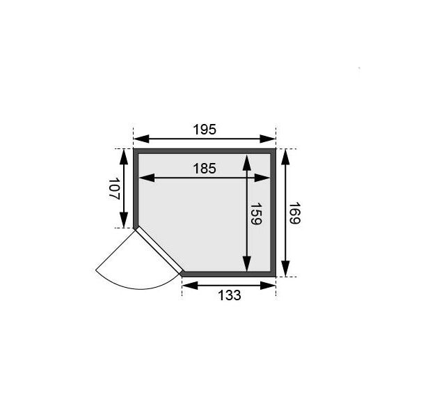 Fínska sauna má rozmer 195 × 169 cm s rohovými dverami. Sauna je celá vyrobená z dreva severského smreku. Drevo pochádza zo vzdialeného severu Európy a je chemicky úplne neošetrené (nie je ani namorené ani nalakované). V dôsledku toho je prosté všetkých známych problematických látok, ktoré by sa v priebehu saunovania mohli z dreva uvoľňovať.