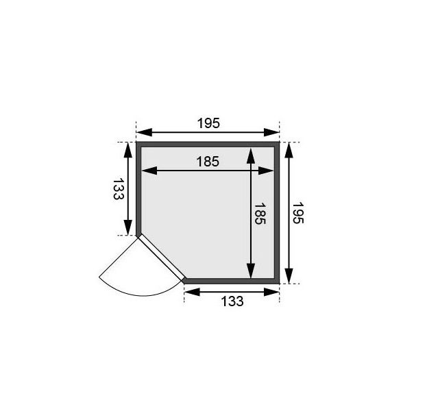 Fínska sauna má rozmer 195 × 195 cm s rohovými dverami. Sauna je celá vyrobená z dreva severského smreku. Drevo pochádza zo vzdialeného severu Európy a je chemicky úplne neošetrené (nie je ani namorené ani nalakované). V dôsledku toho je prosté všetkých známych problematických látok, ktoré by sa v priebehu saunovania mohli z dreva uvoľňovať.