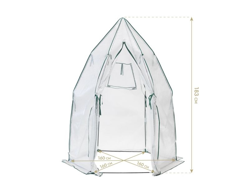 Stabilná oceľová konštrukcia je potiahnutá odolnou UV-stabilnou fóliou, ktorá v lete chráni pred priamym slnkom a v zime izoluje pred mrazom. Praktické dvere na zips umožňujú jednoduchý vstup a integrované vetracie okno zabezpečuje cirkuláciu vzduchu vo vnútri.