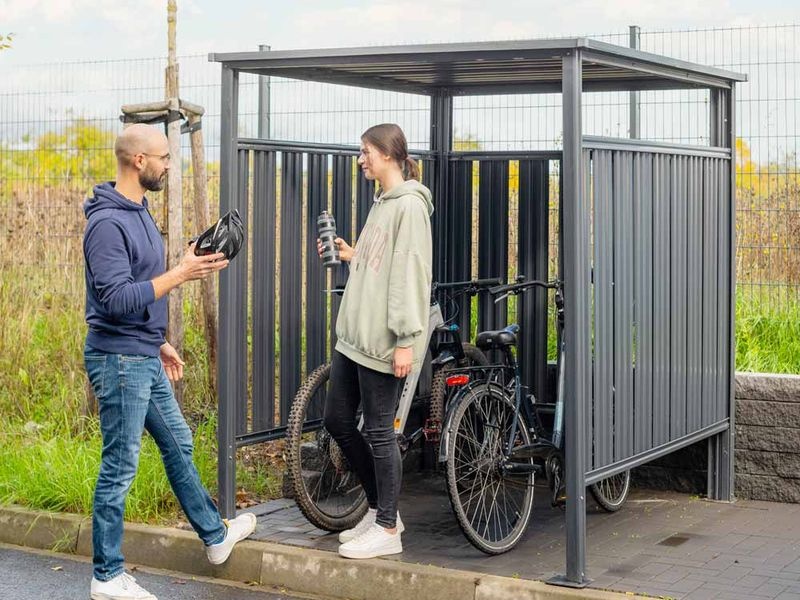 Oceľová garáž na bicykle je praktický prístrešok s univerzálnym využitím — ochráni bicykle, záhradné vybavenie a môže slúžiť aj ako fajčiarsky kútik. Robustná konštrukcia z práškovanej ocele je odolná voči korózii a nepriazni počasia, takže je vhodná na celoročné použitie.