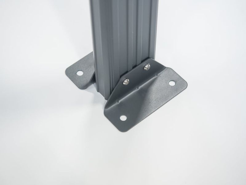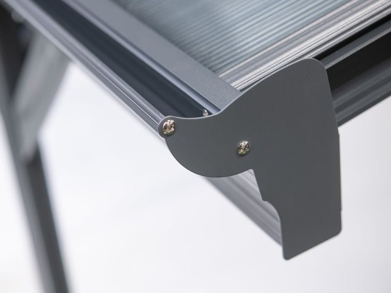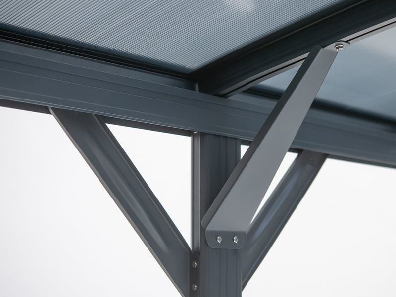 Pevný rám z práškom lakovaného hliníka v antracitovej farbe (RAL 7016) je odolný proti korózii a nevyžaduje žiadnu špeciálnu údržbu. Prístrešok je koncipovaný na celoročné vonkajšie používanie.