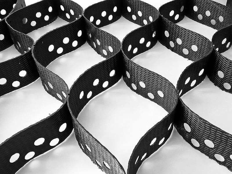 Geobunky Geomacell sú vyrábané z vysokohustotného polyetylénu (HDPE). Materiál vyniká vysokou odolnosťou voči vyšším teplotám aj chemicky aktívnym látkam a umožňuje optimálny roznos síl pri dlhodobom zaťažení.