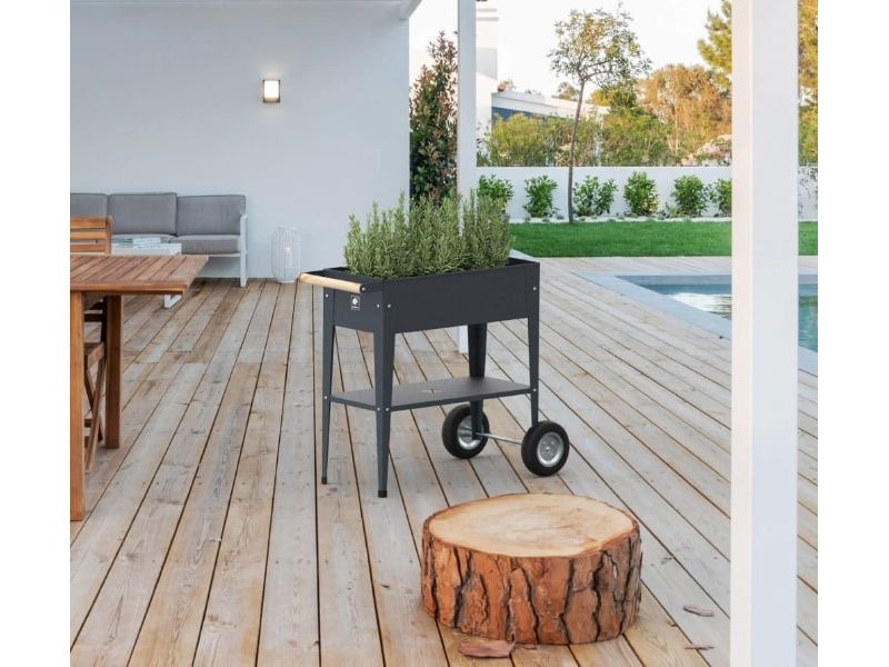 Tento moderný záhon je svojou veľkosťou ideálny pre terasy, balkóny a záhrady a vďaka kolieskam a madlu ho možno ľahko premiestňovať. Vhodný na výsadbu rastlín všetkých druhov, vrátane byliniek. Svojou výškou zabezpečí aj komfort pre chrbát pri starostlivosti o vašu zeleň.