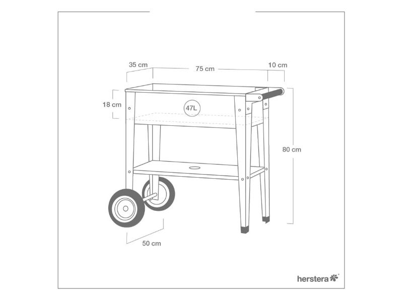 Tento moderný záhon je svojou veľkosťou ideálny pre terasy, balkóny a záhrady a vďaka kolieskam a madlu ho možno ľahko premiestňovať. Vhodný je na výsadbu rastlín všetkého druhu, vrátane byliniek. Svojou výškou zároveň zabezpečí komfort pre chrbát pri starostlivosti o vašu zeleň.