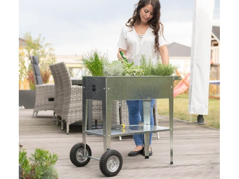 Tento moderný záhon je svojou veľkosťou ideálny pre terasy, balkóny a záhrady a vďaka kolieskam a madlu ho možno ľahko premiestňovať. Vhodný je na výsadbu rastlín všetkého druhu, vrátane byliniek. Svojou výškou zároveň zabezpečí komfort pre chrbát pri starostlivosti o vašu zeleň.