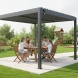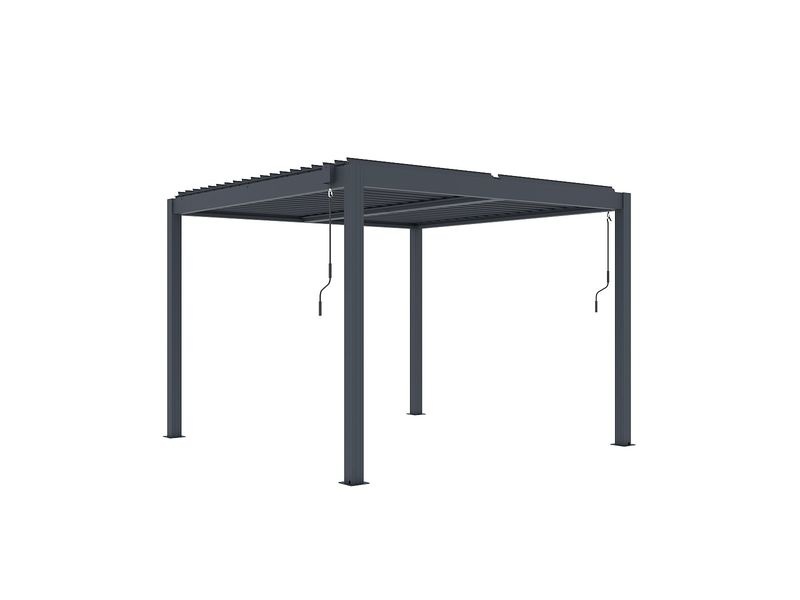 Konštrukcia pergoly je vyrobená z odolnej hliníkovej zliatiny a je nastriekaná práškovou vypaľovanou farbou – komaxitom v antracitovom odtieni.