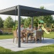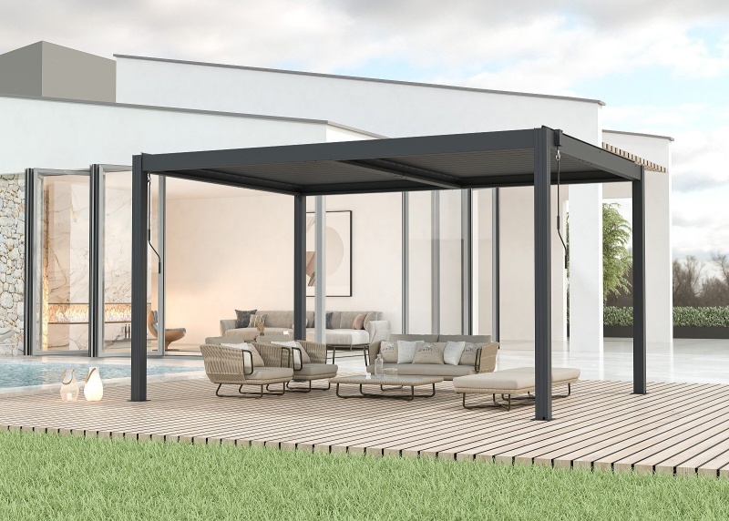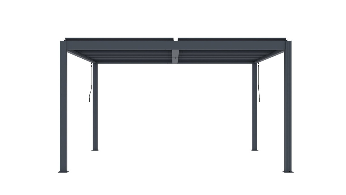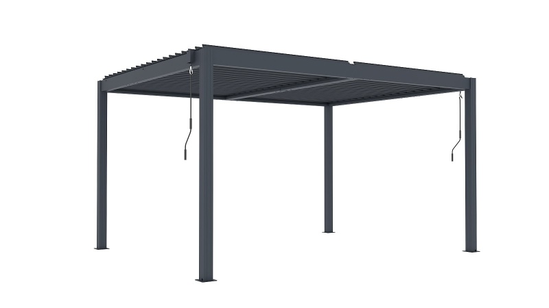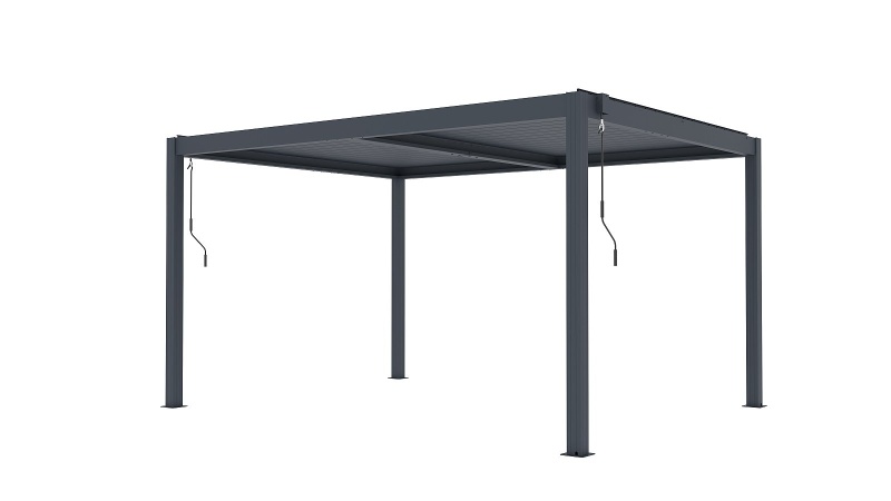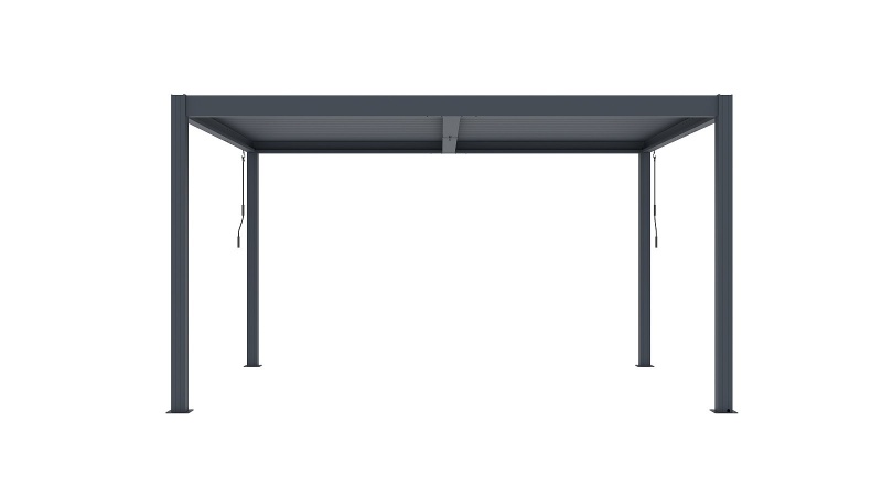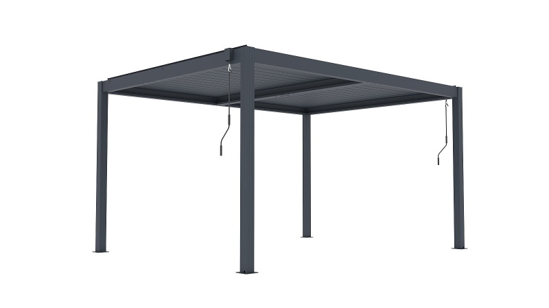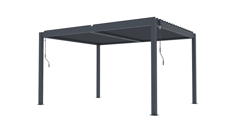 Konštrukcia pergoly je vyrobená z odolnej hliníkovej zliatiny a je nastriekaná práškovou vypaľovanou farbou – komaxitom v antracitovom odtieni.