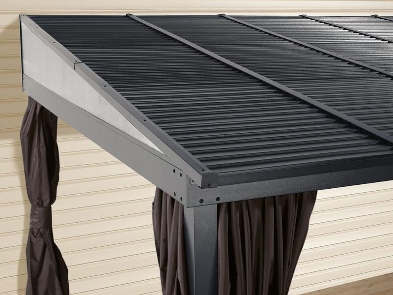 Strecha pergoly je vyrobená z ocele a zaručuje obzvlášť vysokú stabilitu a ľahko odoláva poveternostným podmienkam, ako je dážď, sneh alebo slnko (UV žiarenie). Snehové zaťaženie strechy je až 125 kg/m². Vďaka tomu je možné pergolu nechať na svojom mieste po celý rok.