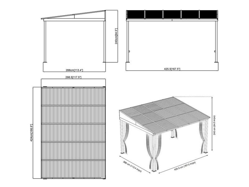 Záhradná hliníková pergola Portland od najznámejšieho kanadského výrobcu prístreškov, je vyrobená z tých najkvalitnejších materiálov, ktoré sú odolné voči korózii. Konštrukcia je z odolného práškovo lakovaného hliníka. Jednotlivé stĺpiky sú majú hrúbku 7,6 cm, sú spájané nerezovými oceľovými skrutkami, čím tvoria veľmi stabilnú konštrukciu.