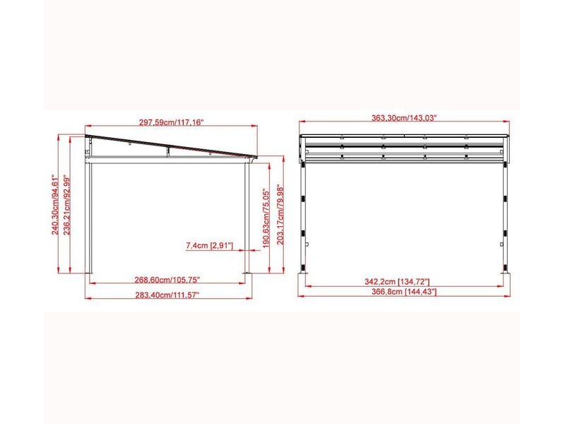 Hliníková pergola od najznámejšieho kanadského výrobcu prístreškov, je vyrobená z tých najkvalitnejších materiálov, ktoré sú odolné voči korózii. Konštrukcia je z odolného práškovo lakovaného hliníka. Jednotlivé stĺpiky majú hrúbku 7,6 cm, sú spájané nerezovými oceľovými skrutkami, čím tvoria veľmi stabilnú konštrukciu.
