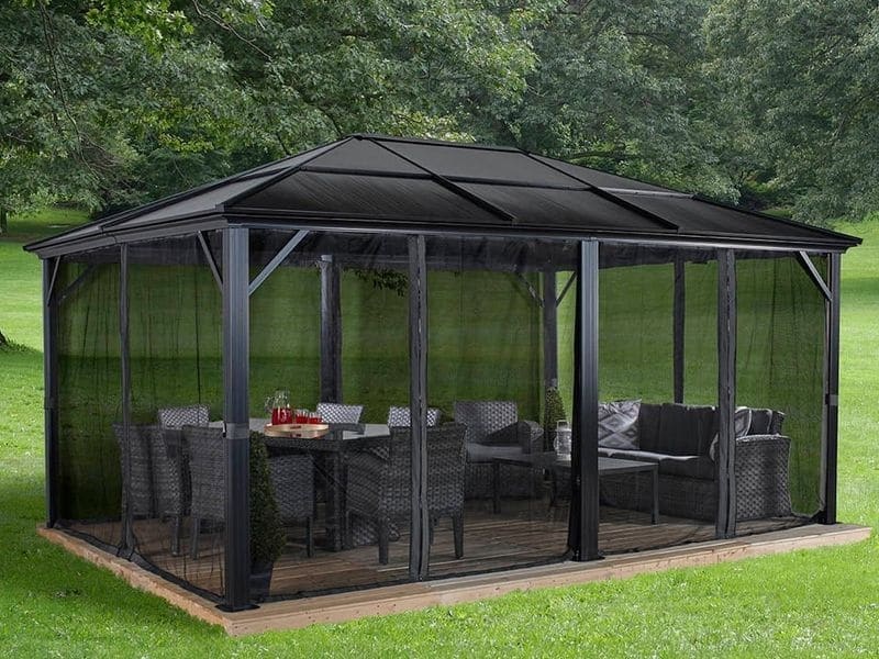 Hliníkový altán vám vytvoří příjemné a útulné místo pro odpočinek hned vedle vašeho domu nebo kdekoliv na zahradě. Je opatřena moskytiérou, které vás během vlahých letních večerů ochrání před komáry.