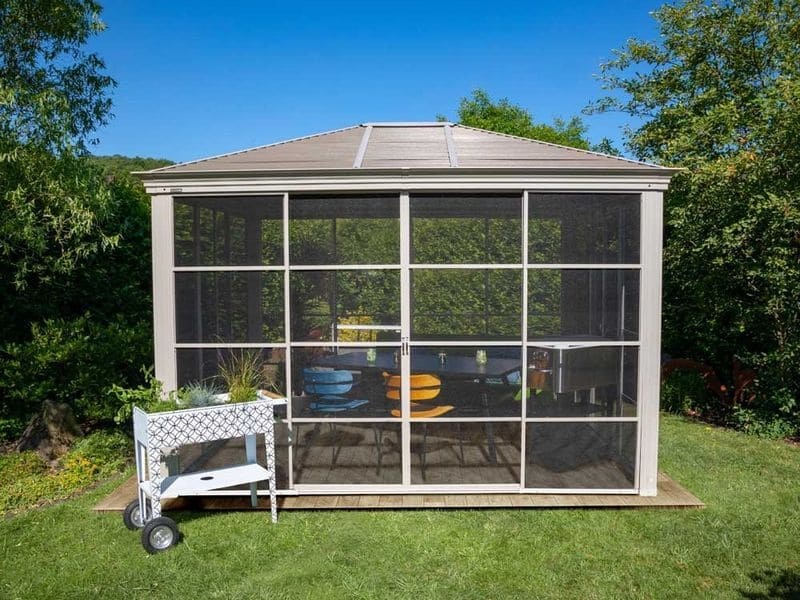 Hliníkový altánok vám poskytne príjemné a útulné miesto na oddych hneď vedľa domu alebo na záhrade. Je vybavený moskytiérou vystuženou hliníkom, ktorá vás počas vlahých letných večerov ochráni pred komármi.