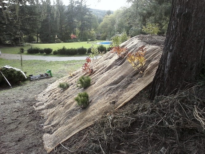 Inštalácia kokosovej rohože na svahoch