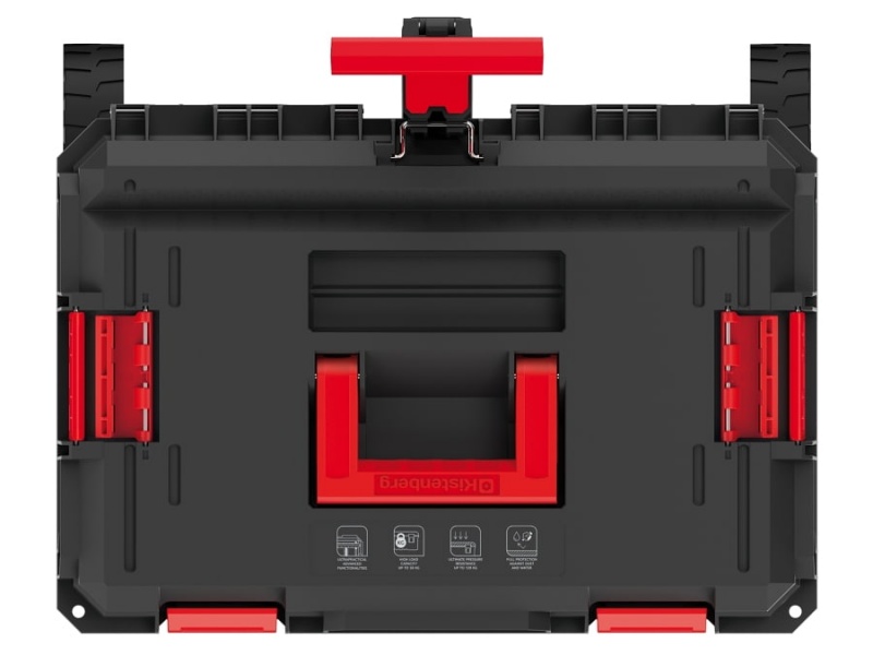 Boxy zaručujú nosnosť po stúpaní až 120 kg, preto ich môžete využiť aj ako pracovnú plošinu pri montážach. Maximálna kapacita zaťaženia pri zostavení kufrov na náradie je až 50 kg. Kufre spájate pomocou zámkového systému.