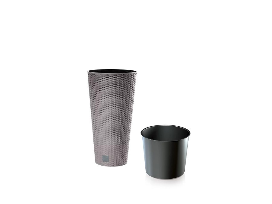Vysoký kvetináč je ideálny pre celoročné pestovanie rastlín. Vďaka štíhlemu tvaru ho pohodlne umiestnite do úzkych priestorov, kde nie je miesta. Kvetináč v imitácii ratanového pletiva je možné umiestniť do vnútorných aj vonkajších priestorov.