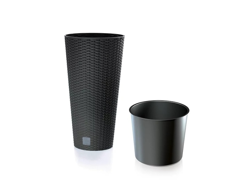 Vysoký kvetináč je ideálny pre celoročné pestovanie rastlín. Vďaka štíhlemu tvaru ho pohodlne umiestnite do úzkych priestorov, kde nie je miesta. Kvetináč v imitácii ratanového pletiva je možné umiestniť do vnútorných aj vonkajších priestorov.
