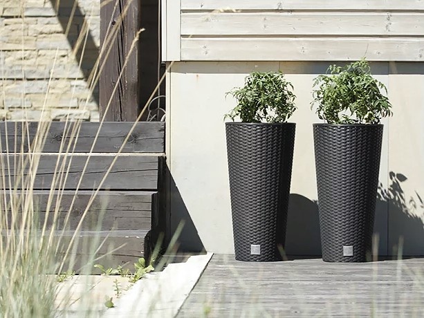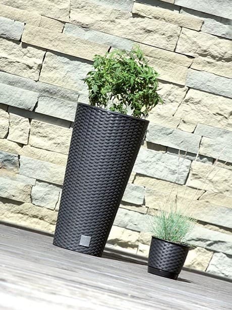 Vysoký kvetináč je ideálny pre celoročné pestovanie rastlín. Vďaka štíhlemu tvaru ho pohodlne umiestnite do úzkych priestorov, kde nie je miesta. Kvetináč v imitácii ratanového pletiva je možné umiestniť do vnútorných aj vonkajších priestorov.