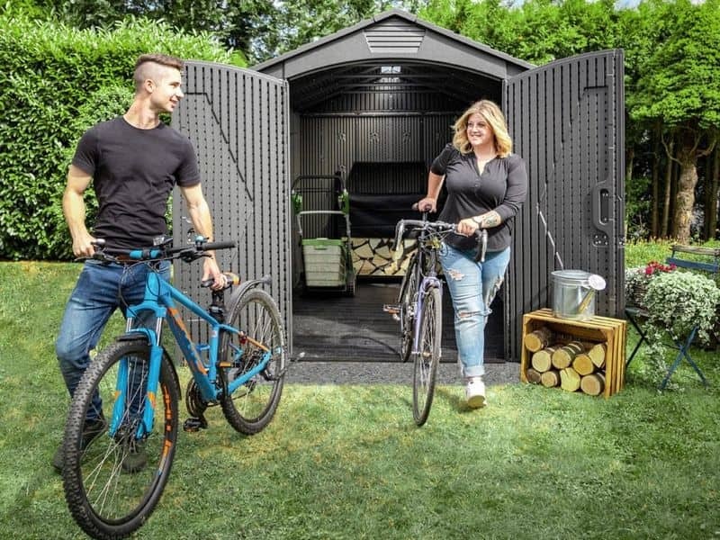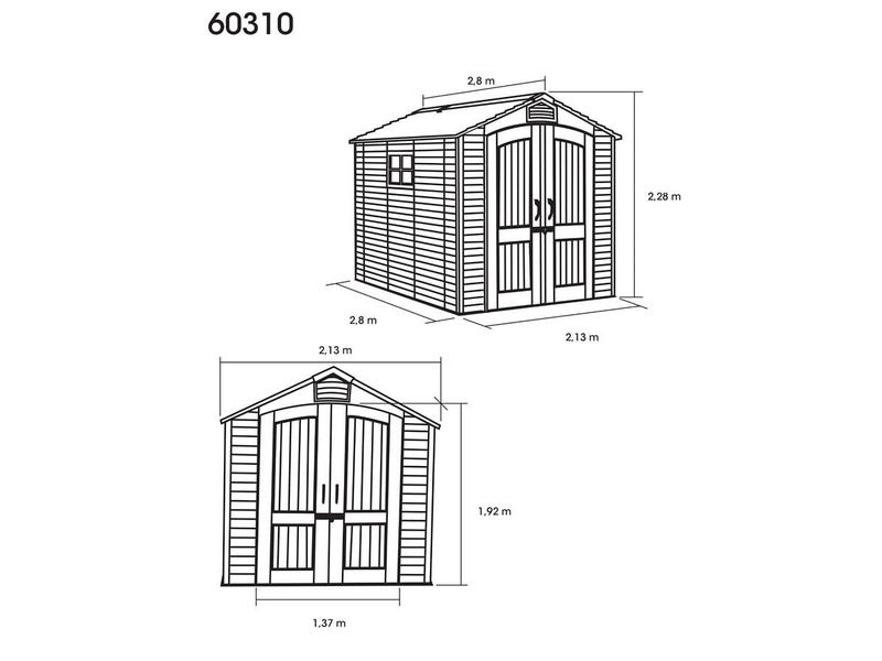 Súčasťou domčeka sú aj veľké dvojkrídlové dvere, ktoré umožňujú jednoduchý prístup a pohodlné uloženie vášho vybavenia. V domčeku tak bez problémov uskladníte aj širšie záhradné náradie.