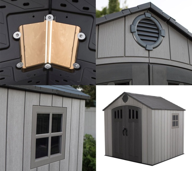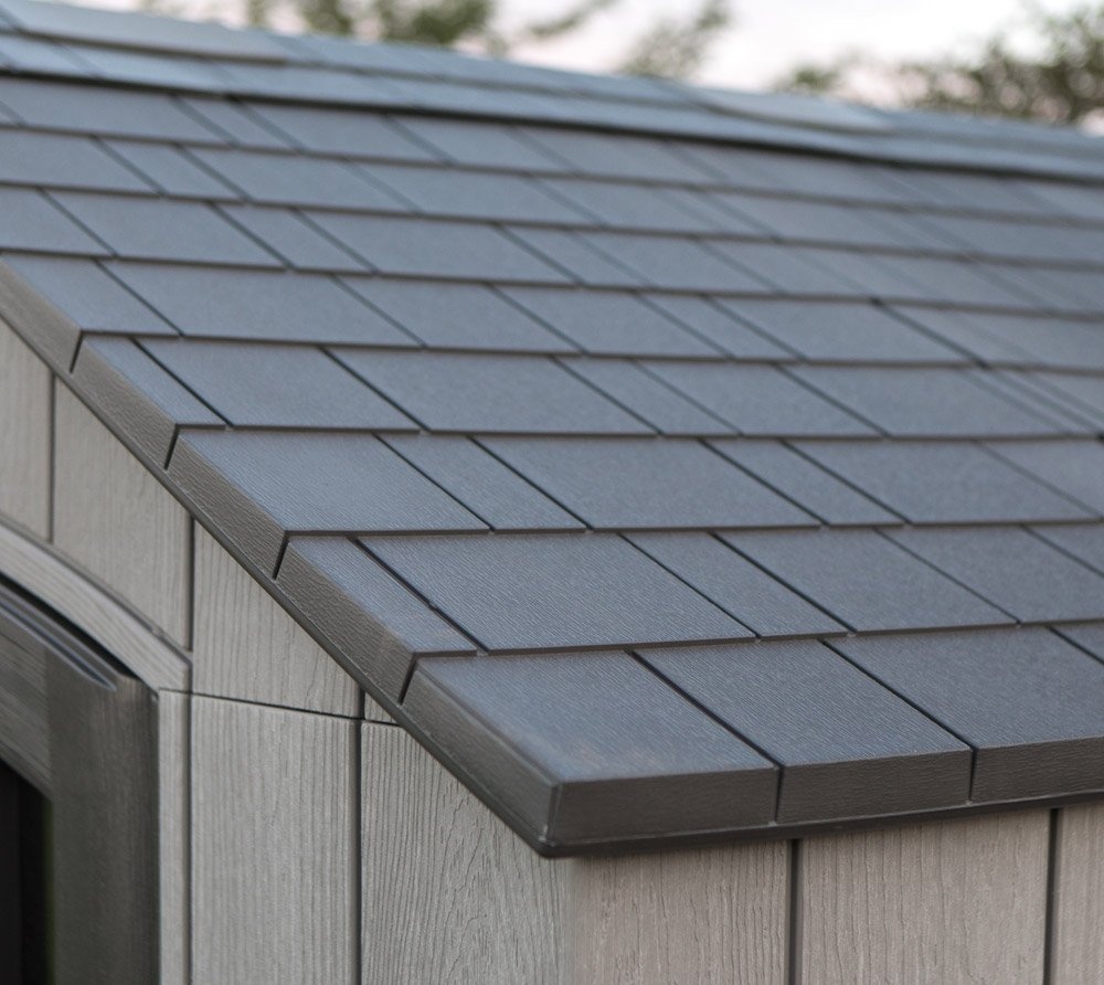 Konštrukcia z dvojstenného, kovom vystuženého plastu HDPE (tvrdý polyetylén) zabezpečuje domčeku obrovskú stabilitu. Strešná konštrukcia z vysoko výkonnej ocele vydrží zaťaženie až 115 kg/m² a ideálny sklon strechy navyše umožňuje rýchly odtok vody a snehu.
