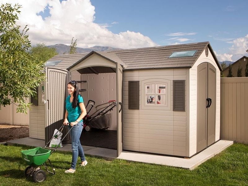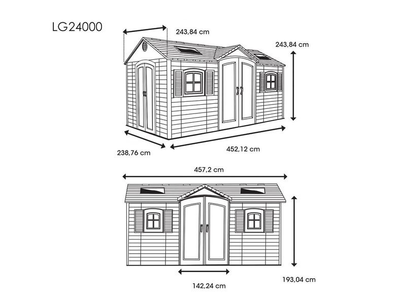 Súčasťou domčeka sú aj veľké dvojkrídlové dvere, ktoré umožňujú jednoduchý prístup a pohodlné uloženie vybavenia. Vďaka nim môžete bez problémov uskladniť aj širšie záhradné náradie.