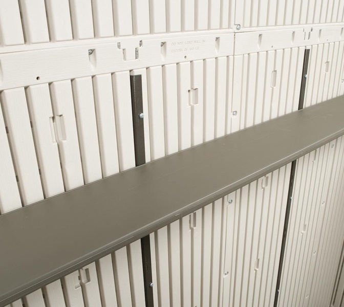 K domčeku patrí aj polica (228 × 23 cm), na ktorú môžete uložiť napríklad kufor s náradím, a štyri rohové police, ktoré poskytnú dostatok úložného priestoru.