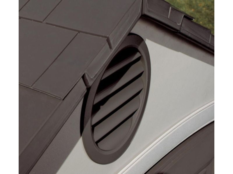 Konštrukcia z dvojstenného, kovom vystuženého plastu HDPE (tvrdý polyetylén) zabezpečuje domčeku obrovskú stabilitu. Strešná konštrukcia z vysoko výkonnej ocele vydrží zaťaženie až 115 kg/m² a ideálny sklon strechy navyše umožňuje rýchly odtok vody a snehu.