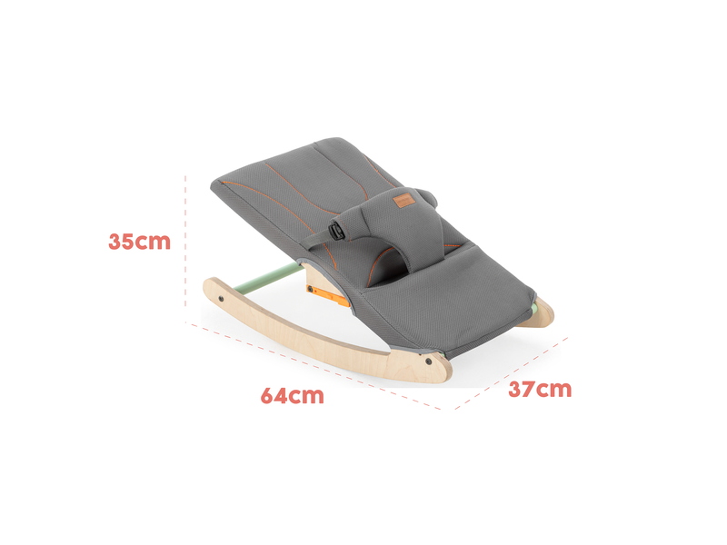 Hojdacie kreslo Wavy je vyrobené z certifikovanej udržateľnej brezovej preglejky, bez chemikálií, s čalúnením zo sieťoviny. Má zaoblené hrany pre zvýšenú bezpečnosť vášho dieťaťa.