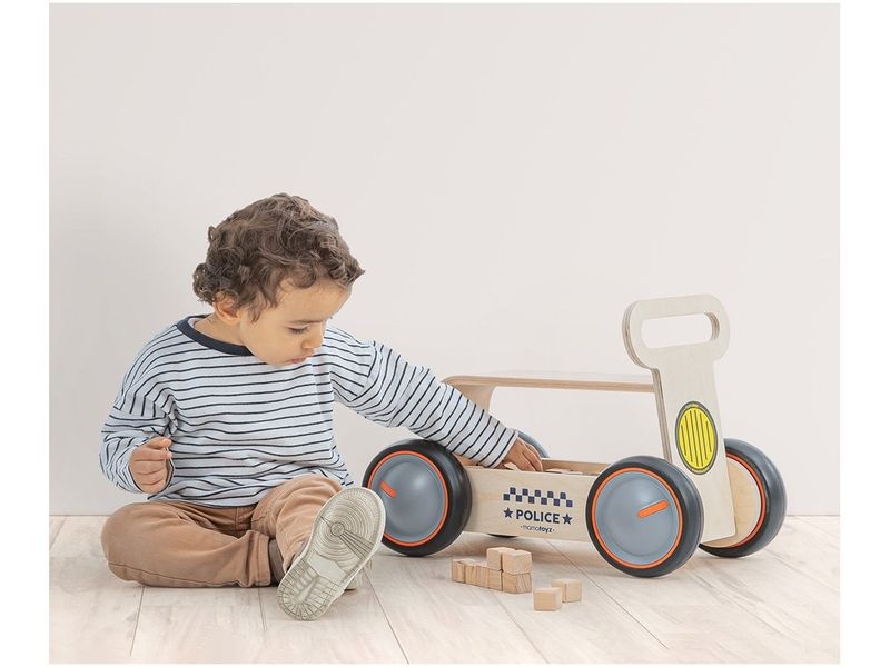 Policajné auto a chodítko od MamaToyz je ideálnou kombináciou zábavy a učenia pre vašich malých objaviteľov. Toto roztomilé a všestranné detské vozidlo podporuje motorický vývoj, zatiaľ čo prináša hodiny zábavy. Vďaka premyslenému dizajnu je bezpečné a skvelé pre deti od 12 mesiacov do 3 rokov. Môžete tiež utiahnuť alebo povoliť všetky drevené kolesá a ovplyvniť tak rýchlosť otáčania pneumatík. Pod robustným sedadlom je dostatok úložného priestoru pre obľúbeného plyšáka, stavebnice a pod. Vďaka tomu sa z pojazdného auta a chodítka stane v okamihu mini vozík vhodný pre deti.
