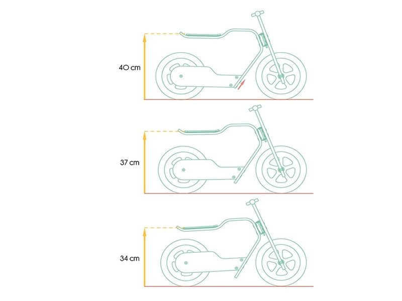 RideMe je vyrobené z certifikovaného udržateľného brezového multiplexu, ktorý zaisťuje dlhú životnosť a odolnosť. Materiál je neošetrený, čo znamená, že neobsahuje žiadne chemikálie, a prirodzené drevené povrchy sú starostlivo zaoblené, aby sa predišlo akémukoľvek riziku zranenia. Veľké profilované gumové pneumatiky zaisťujú plynulú jazdu aj na nerovnom teréne. Navyše ponúka tri výškové polohy (34 cm, 37 cm, 40 cm), prispôsobiteľné rastúcemu dieťaťu.