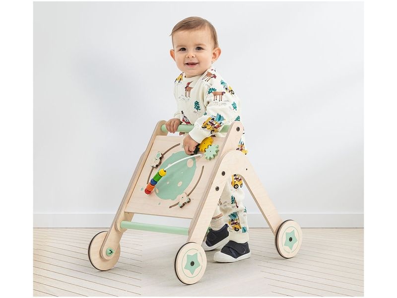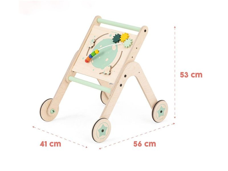 Trio WalkMe od MamaToyz je univerzálny hrací stolík, ktorý možno jednoducho prestavať na chodítko. Podporuje jemnú aj hrubú motoriku a dáva vášmu dieťaťu príležitosť urobiť prvé kroky bezpečne a s radosťou. Stolík je výškovo nastaviteľný v 4 polohách (38–54 cm). Obsahuje integrované motorické hračky, ktoré podporujú zručnosť. Pre stabilnú hru je možné kolesá zaaretovať, a zároveň môžete utiahnuť alebo povoliť všetky kolieska a ovplyvniť tak rýchlosť ich otáčania pre väčšiu bezpečnosť.