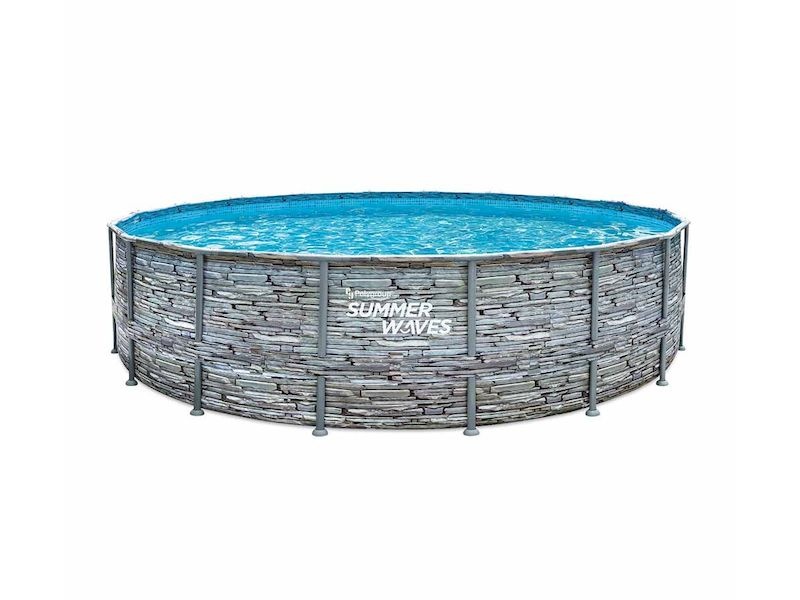 Rámová konštrukcia nadzemného bazéna pozostáva z rúrok z pokovovanej ocele. Vonkajšia stena bazéna v elegantnom sivom odtieni výborne zapadne do takmer každej záhrady.