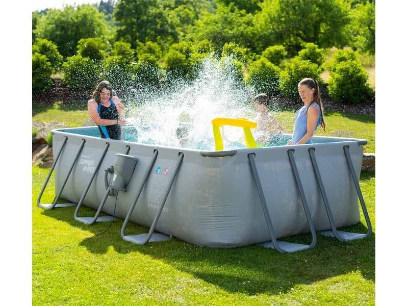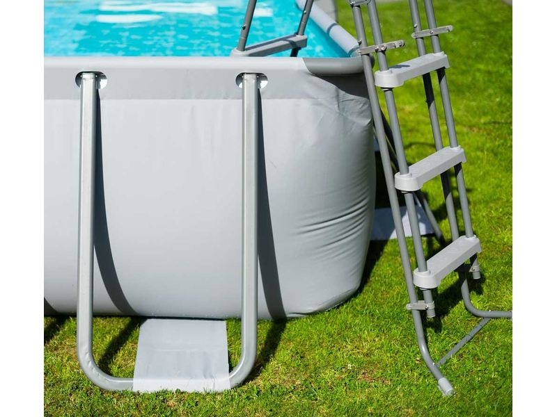 Rámová konštrukcia nadzemného bazéna sa skladá z trubiek z pokovenej ocele. Vonkajšia stena bazéna v elegantnom sivom odtieni veľmi dobre zapadne takmer do akejkoľvek záhrady.
