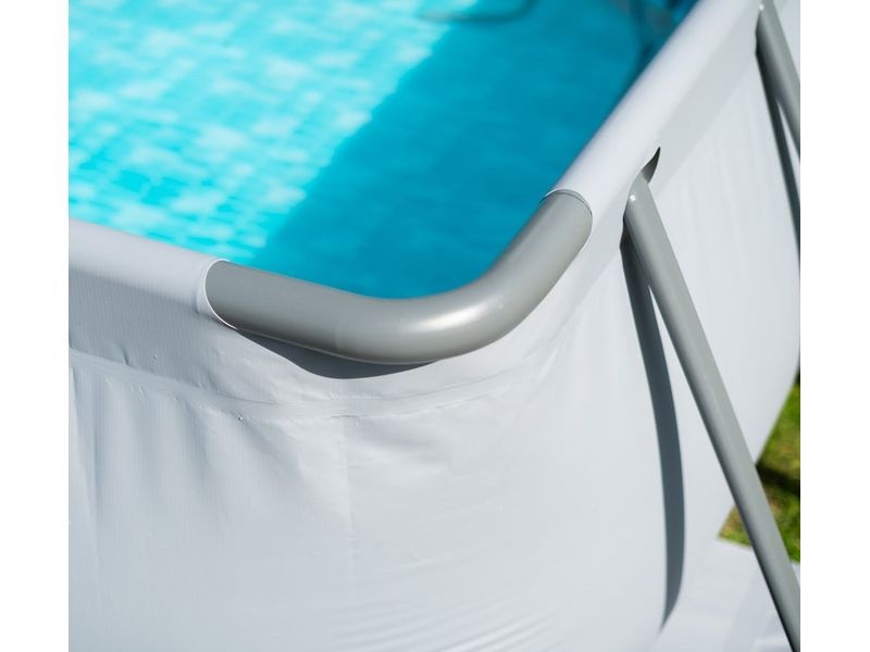 Rámová konštrukcia nadzemného bazéna sa skladá z trubiek z pokovenej ocele. Vonkajšia stena bazéna v elegantnom sivom odtieni veľmi dobre zapadne takmer do akejkoľvek záhrady.