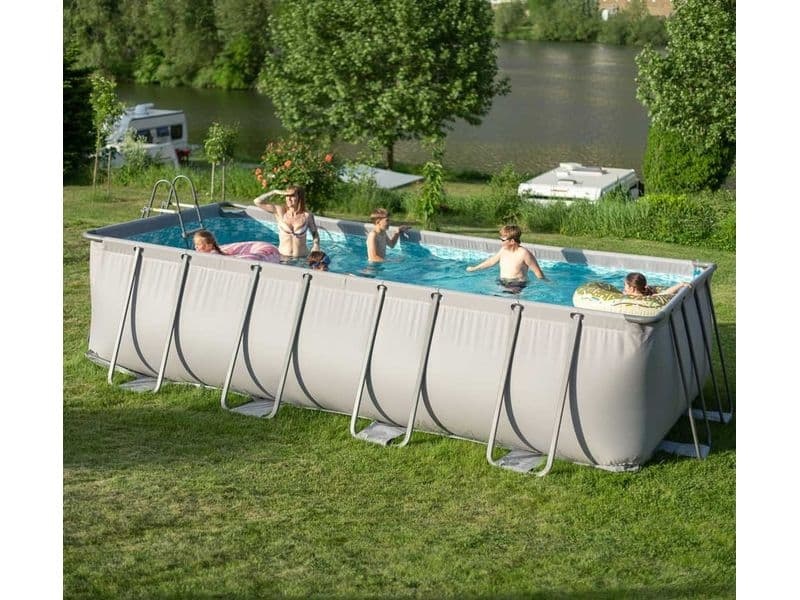 Rámová konstrukce nadzemního bazénu se skládá z trubek z pokovené oceli. Vnější stěna bazénu v elegan­tním šedém odstínu velmi dobře zapadne téměř do jakékoli zahrady.