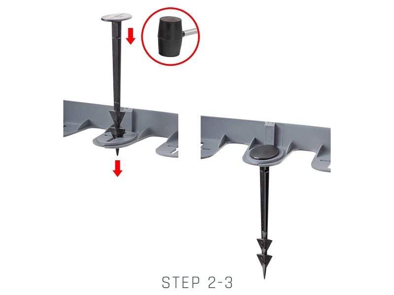 Upozornenie: Plastové kolíky je možné použiť len do mäkkej zeminy, do tvrdej pôdy je vhodnejšie použiť napr. oceľové skoby Geopin Steel alebo bežné oceľové klince (k dostaniu v každom väčšom hobbymarkete).