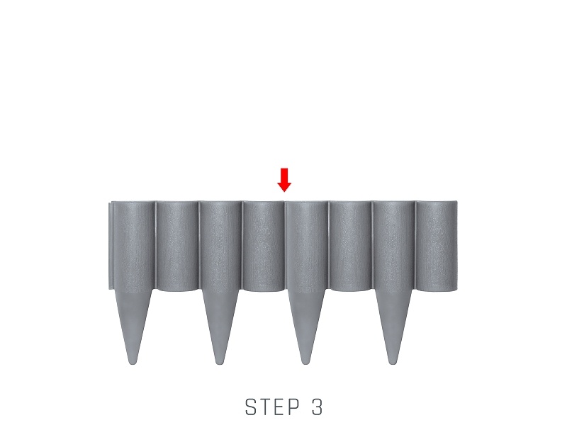 Palisádový obrubník má nízku hmotnosť, preto sa s ním pohodlne manipuluje, a inštalácia je tak rýchla a ľahká. Pomocou tŕňov zapichnete obrubníky do zeme, a tým ich upevníte v pôde. Potom už stačí len pripojiť ďalší kus palisády, ktorý zaklapnete do predpripravených zámkov u už ukotveného obrubníku. Môžete tak vytvárať neobmedzene dlhý obrubníkový pás.