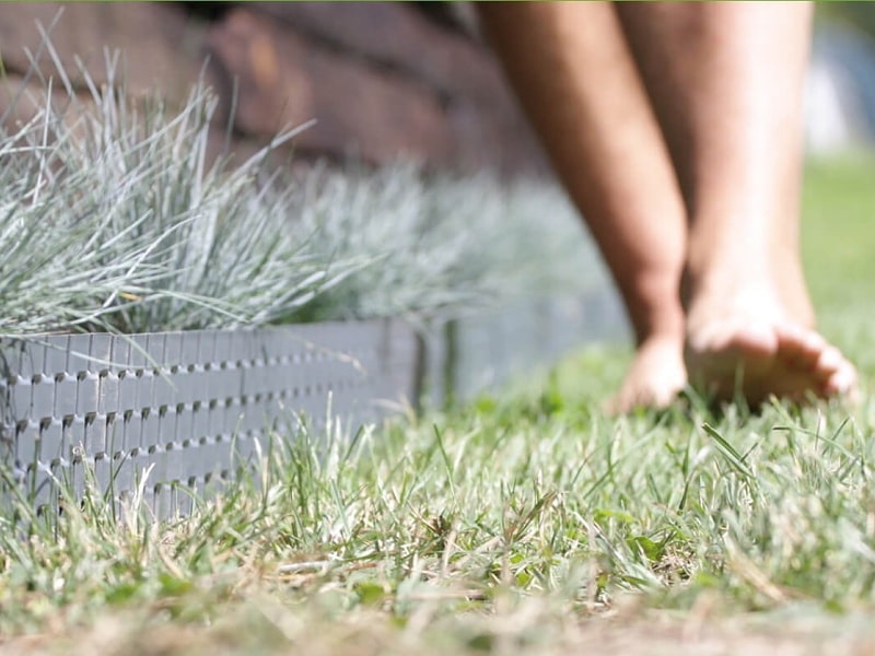 2. Pre napojenie ďalšieho dielu využite predpripravených zámkov na okrajoch obrubníku. Stačí palisádu zaklapnúť do seba a vytvoríte ľubovoľne dlhé obruby záhonov.
