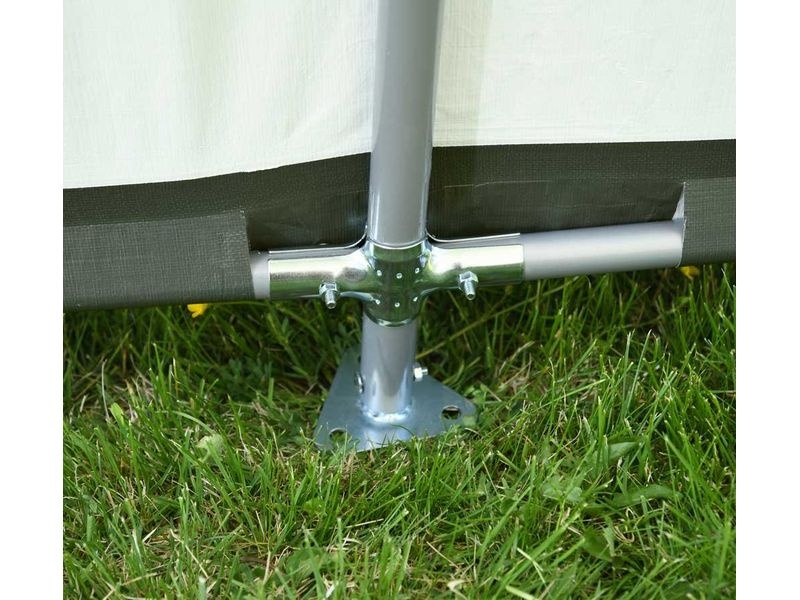 Rám konštrukcie je vyrobený z oceľových trubiek s priemerom 35 mm, čo zaisťuje pevnosť a odolnosť. Rúrky sú opatrené prémiovou antikoróznou úpravou. Dodatočnú stabilitu zaisťuje patentovaný zámok ShelterLock, ktorý je priskrutkovaný ku každej priečnej tyči a slúži tak ako stabilizátor rámu.