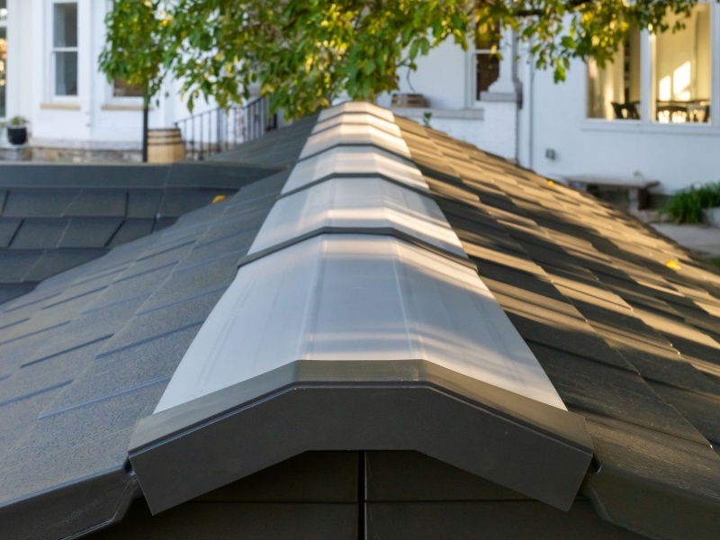 Strecha so sklonom 30° účinne odvádza sneh aj dažďovú vodu. Domček je testovaný na zaťaženie strechy až 115 kg/m² a odolnosť proti vetru do 113 km/h, čo dokazuje jeho spoľahlivosť aj pri extrémnom počasí.