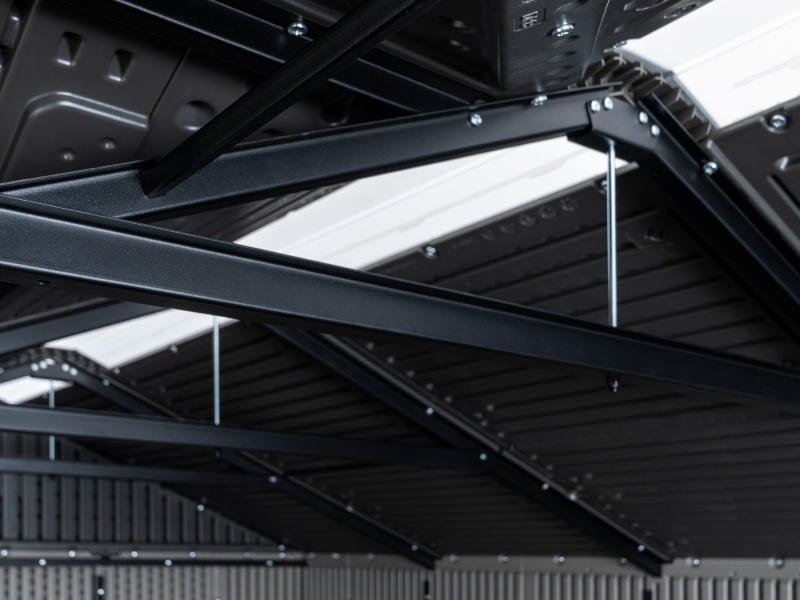Domček je vyrobený z dvojstenného plastu (HDPE) vystuženého kovovou konštrukciou. Steny s hrúbkou 26 mm zaisťujú mimoriadnu stabilitu a pevnosť. Materiál s UV filtrom nežltne, nekrehne a nevyžaduje žiadne nátery, čo znamená minimálnu údržbu a maximálnu životnosť.