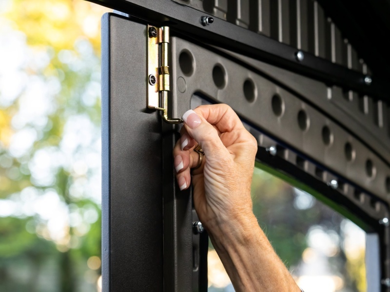 Montáž domčeka je rýchla a jednoduchá vďaka zacvakávacím panelom a skrutkovým spojom. Žiadne natieranie, žiadna korózia – povrch sa ľahko čistí a aj po rokoch zostáva ako nový. Domček je navyše možné jednoducho premiestniť na iné miesto v záhrade.